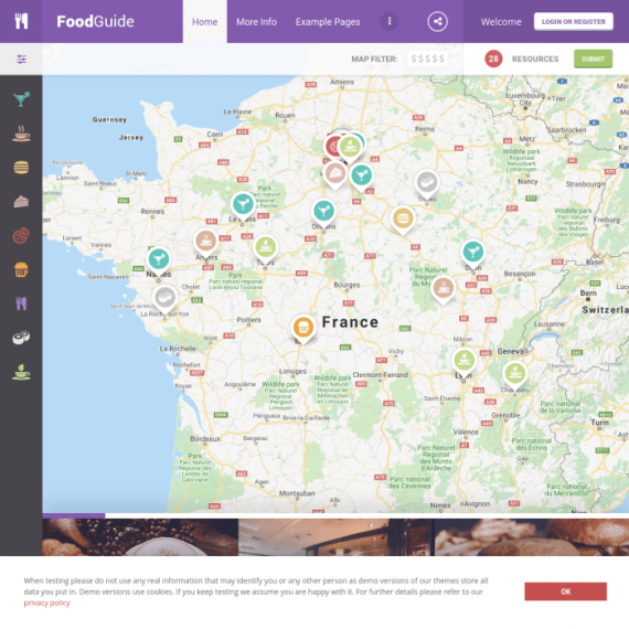 FoodGuide is the best theme suitable for restaurant listings. It was created in mind with Food Menu feature which allows you to unleash the full potential of listed restaurants.