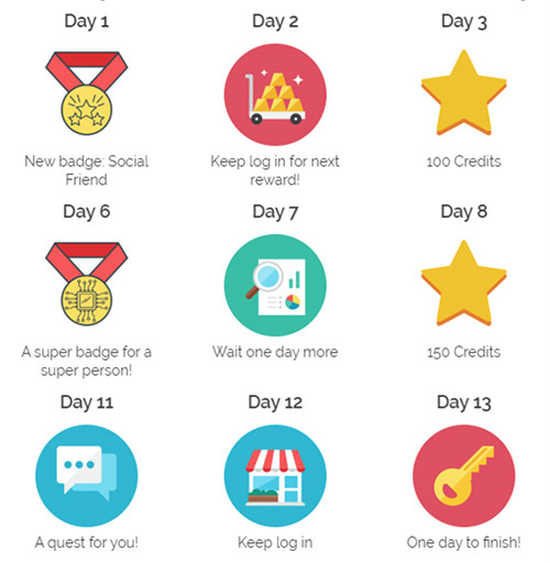 Daily Login Rewards enables you to reward users who log in to your website every day. You can create a calendar with daily login rewards and set any restrictions as needed, such as forcing continuous logins with fines or restrictions by time period.