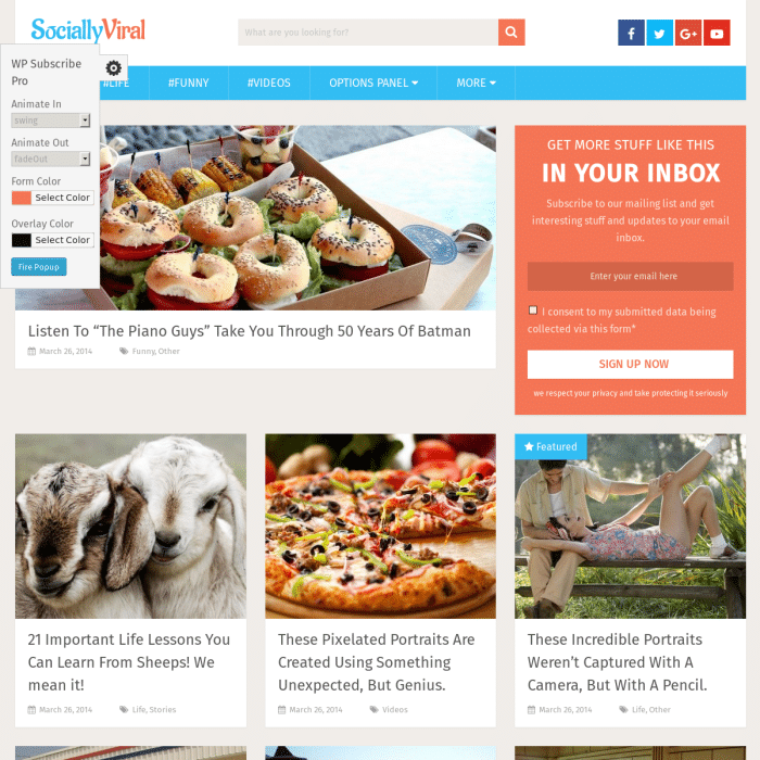 MyThemeShop WP Subscribe Pro plugin helps to boost your conversions of traffic to subscribers, and generate more residual traffic and earnings. WP Subscribe Pro supports Feedburner, MailChimp and Aweber and is a must-have plugin for any blog.