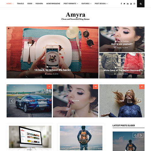 Amyra is a beautiful and unique WordPress blog theme. The Amyra theme provides you with 4 layouts and 10 designs for each layout and many custom widgets. Amyra is equipped with a series of customization options, styles, layouts and widgets to allow your website to blog naturally.